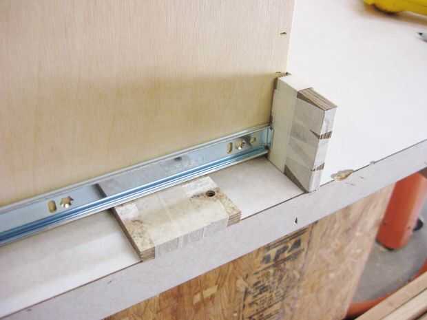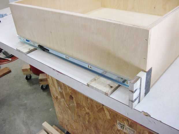Guía cajón posicionamiento fue determinada por varios factores, y usé un par de trucos para asegurarse de que todos ellos fueron sujetados precisamente según sea necesario. Véanse las notas de la foto para obtener sugerencias sobre esto.