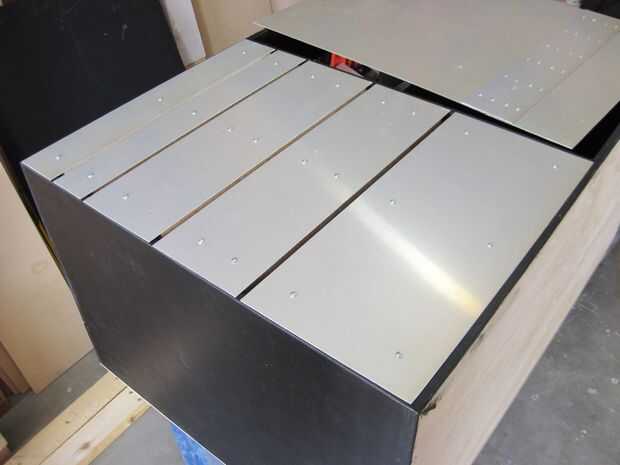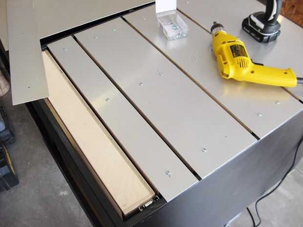 Hice las caras de cajón y puerta de aluminio antigua señales de tráfico. Ver mi taller fácil instructable para obtener más información sobre donde los obtuve, y los métodos específicos utilizados cortan las piezas e instalan.