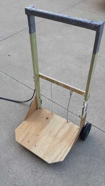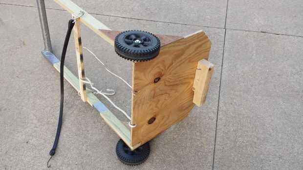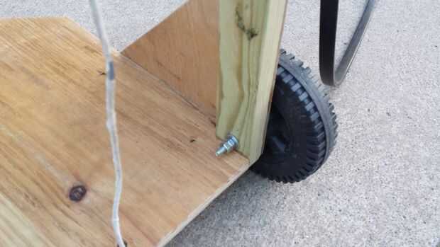La meta de hacer de este carro de césped es hacerlo ligero, pero suficientemente sólido que acarrea la bolsa llena de yarda se niegan, tal vez otras herramientas más pequeñas y una botella de agua.