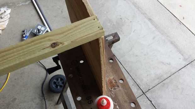 Las abrazaderas de madera añadirá mucho de rigidez a la cesta, es muy importante tenerlos pegados, clavados y atornillados juntos.