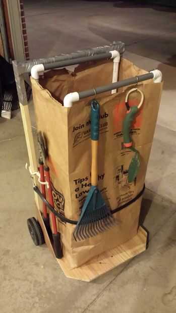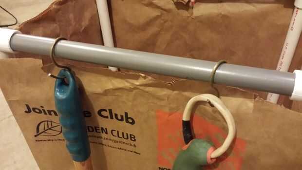 Agregar bastantes herramientas de jardín en el carro con los ganchos. Tampoco se hacen del alambre eléctrico rescatado, o las perchas de alambre.
