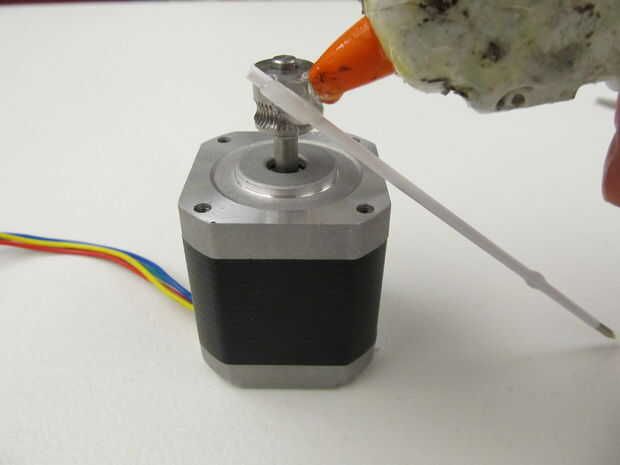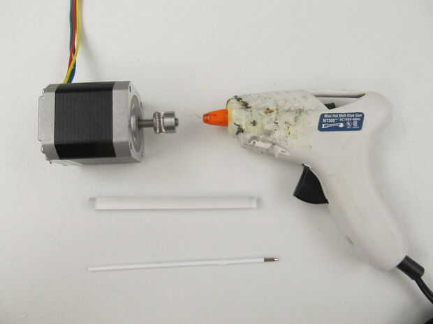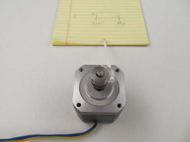 Motores paso a paso pueden tener rotaciones muy pequeñas para cada paso. Esto hace difícil hacer un seguimiento de qué ángulo está en el. Para hacer el cambio en ángulo un poco más claro, vamos a pegar una esfera en nuestro motor paso a paso.