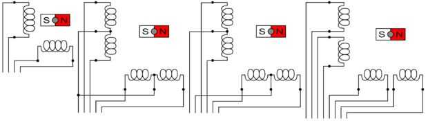 Esencialmente, dentro de un motor paso a paso hay varias bobinas electromagnéticas que rodean a un imán. Para hacer que el motor tome un paso, potencia cada una de las bobinas a su vez.