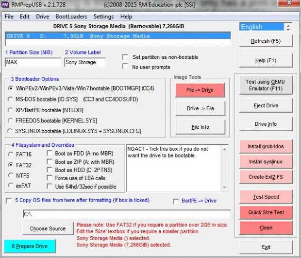 b) RMPrepUSB -debe ser utilizado en unidades flash USB, pero no en las tarjetas SD en un lector de tarjetas!