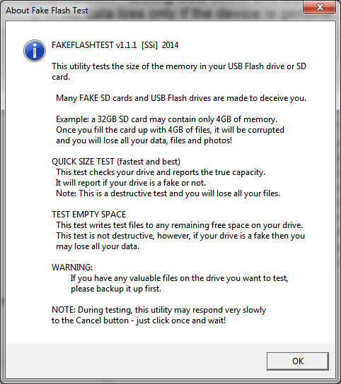 Esta pequeña herramienta busca sectores defectuosos o falsos informes del tamaño incorrecto para el sistema operativo.