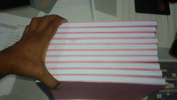 Sostenga el libro juntos, por lo que puede marcar en la misma distancia de todo el libro (que está en el centro).