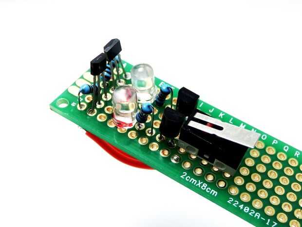 Este dispositivo es extremadamente simple y consta sólo de dos circuitos independientes con un sensor de efecto hall (y3144), un LED, dos resistencias y un transistor PNP. La polaridad se define simplemente por la que se enfrenta dirección del sensor de efecto hall.