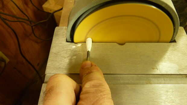 Finalmente, arena de la parte superior el extremo de la palanca es plano y se parece a la forma del archivo cuando vieron recto.