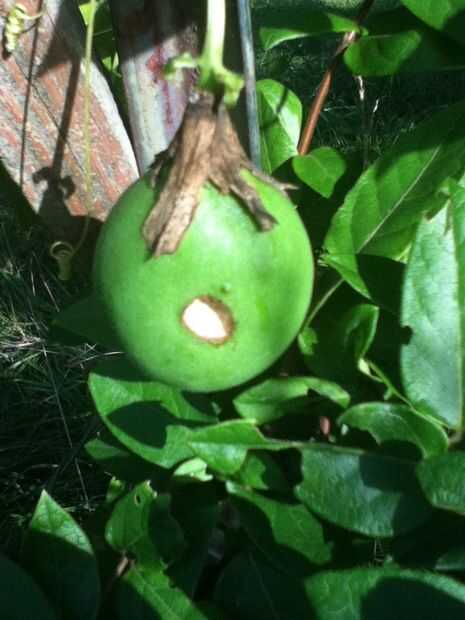 Pasiflora o Maypop, produce una dulce degustación de fruta que puede consumirse crudo. Consistencia de los plátanos.