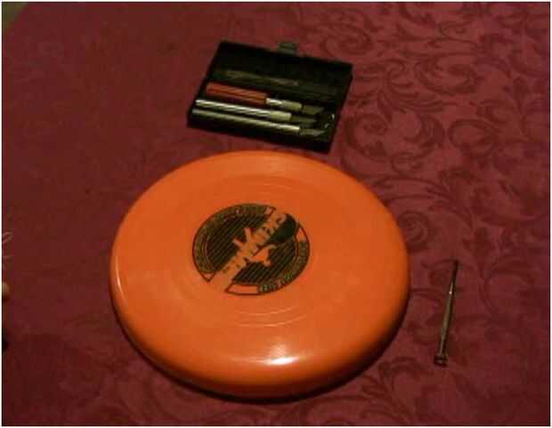 Frisbee de plástico barato luz yoyo, cuchillo xacto o cuchillo de cocina afilado, destornillador pequeño... eso es todo!
