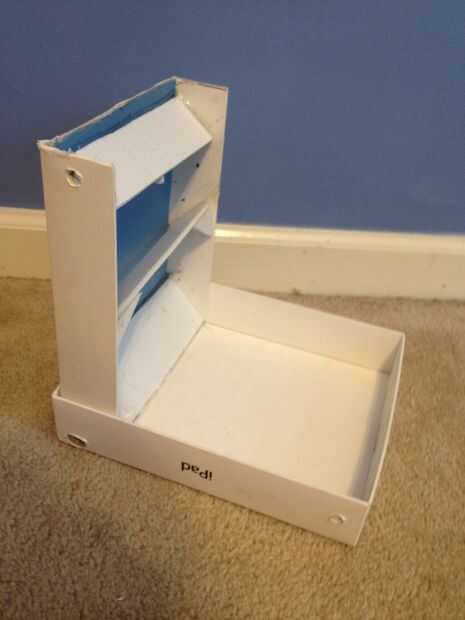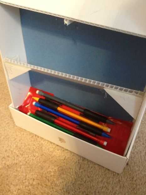 Para nuestra escuela tuvimos que hacer algo a partir de una caja de cartón corrugado a un producto que puede utilizarse para otra cosa. Una caja existentes que hay que cambiar un poco a otro nuevo producto.Combina una caja de cartón corrugada (usada)
