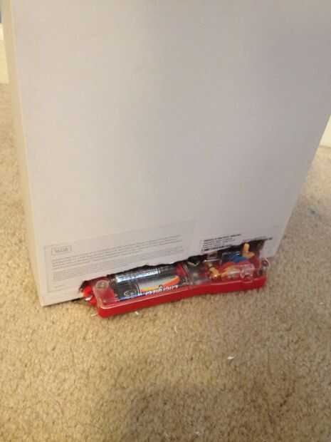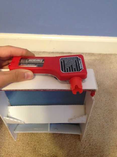 Después de terminar todos los agujeros de perforación, he añadido el componente motor. La ruleta motorizada fue batería accionado y consistió en un mecanismo giratorio y un botón para manejar el dispositivo. Comencé trazando el spinng componente en la parte inferior de la caja. Entonces yo cortar el contorno usando un cuchillo del exacto. Tijeras funcionan bien también. Coloqué el dispositivo en la parte cortada, y la ruleta encajan perfectamente. Yo entonces alineado el botón con el borde de la caja. Esto era importante porque ahora puede funcionar el iDispense aplicando presión a la parte superior de la caja. Entonces yo con cinta el motor en su lugar. Yo quería hacer el proyecto un poco más complejo con una mejor manera de realmente dispensar los lápices, pero no tenía tiempo suficiente debido a deportes y otras actividades extracurriculares.