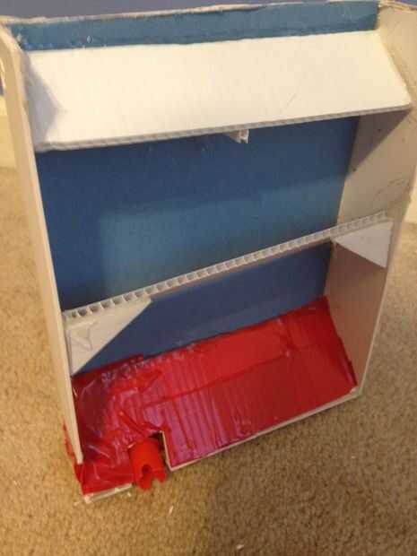 Para nuestra escuela tuvimos que hacer algo a partir de una caja de cartón corrugado a un producto que puede utilizarse para otra cosa. Una caja existentes que hay que cambiar un poco a otro nuevo producto.Combina una caja de cartón corrugada (usada)