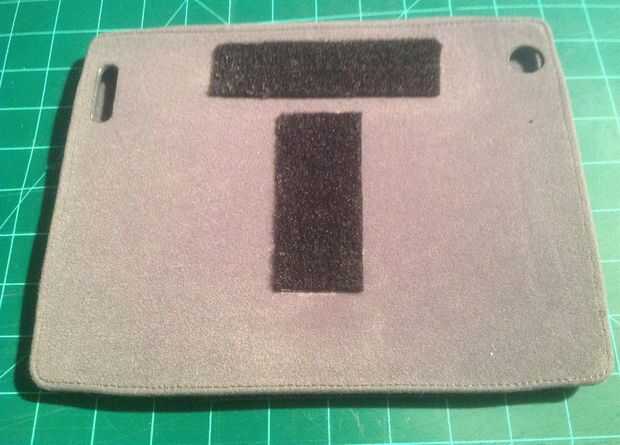 Aunque el material grueso es ligeramente más caro que el material fino, no hay necesidad para cubrir completamente la parte posterior de la caja interior del iPad. Debido a su mayor fuerza adhesiva, dos pequeñas tiras de material de bucle, con cemento de contacto, permiten un caso de la iPad ser devueltos a condiciones un costo de menos de $1 cada uno (véase figura 11). Esto es un ahorro significativo para una escuela, que de otro modo tendría que pagar $15 cada uno para los casos de sustitución.