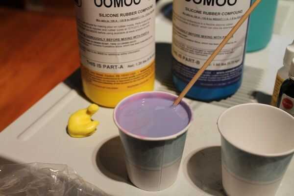 Previamente, yo había utilizado liso de goma de uretano (Reoflex), aquí estoy usando el caucho de silicona Oomoo. Puesto que las impresiones son hechas de un material de base de silicona tienes que usar a un agente desmoldante lo contrario voy a seguir. También, en el pasado "flotaría" las impresiones en el líquido de arriba. Da vuelta hacia fuera, es la manera que lo hacen los profesionales (y hace un montón de sentido) es puesto la impresión en el envase boca abajo y luego cubrir con su compuesto de goma. Cuando se las hacia fuera no podría ser capaz de ver la parte superior, pero sólo tienes que cortar una fina capa de goma para revelarlos. Luego debe poder para solo ellos.