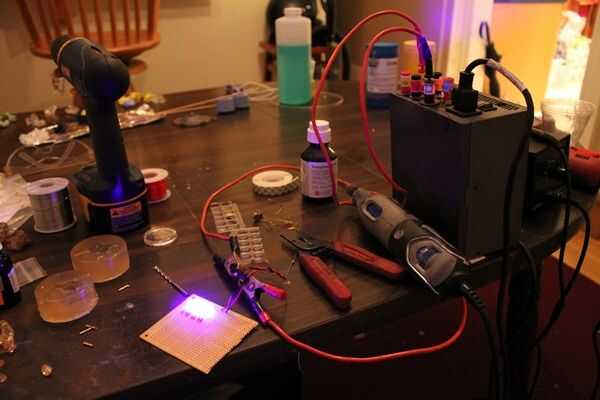 La manera de hacerlo profesionalmente es hacer un molde de un material hidrocoloide transparente (que se puede comprar en algunos de los lugares que venden los acrílicos UV, pero viene él cantidades enormes a granel y es caro). Luego, se rellena el molde con su compuesto UV, ponerlo en una cámara de UV, que cubre la parte superior para que no la cura y zap para un período de tiempo. Debido a su exposición de la superficie del outter a través del material del molde, cura desde el exterior él. Cuanto más tiempo se pone UV luz, cuanto más gruesa sea la pared. También, la cámara de UV garantiza que todas las superficies están consiguiendo incluso la exposición, dándole un espesor de pared uniforme. No tengo una cámara de UV, pero hice un poco la luz UV con (7) LEDs de UV de onda larga 330mW (algunas matemáticas rápido me dice que... 2.31W total!) que cableado en un protoboard y alimentado con una fuente de alimentación ATX hackeada usando la salida de 12V. El problema con esto es que tengo que aplicar la luz en secciones, lo que significa que es básicamente imposible obtener un espesor uniforme a lo largo de. Pero usted puede conseguir bastante cercano. Hice mis moldes auditivos con el hidrocoloide más barato, más común es: gelatina. La gelatina más utilizas el material será el más firme, pero más opaco será así. He encontrado dos paquetes de gelatina pura Knox por 4 onzas de agua fue una muy buena relación. Puse los moldes maestro plástico que boca abajo hice en metal probetas graduadas sentado en un baño de agua helada y luego se les cubre con la gelatina líquida caliente (por esta razón no podía utilizar cera para hacer su acumulación). Una vez ajustado, solía un cuchillo de mantequilla vibración excesiva hacia fuera (obviamente, utilizando poco las tazas de papel forrada de cera es más fácil porque sólo puede desgarrarlos lejos, y que es lo finalmente más adelante, pero en vez de un baño de agua helada sólo ponerlos en la nevera). Después de hacer estallar hacia fuera de los moldes de plástico de los moldes de gelatina, lleno con la laca de Fotoplast, 4 "lados" expuesto durante unos 30 segundos y luego derramó el exceso. Si hay alguna mancha real fino sólo puede agregar algunos más componen y dan otro zap. Casi puedo garantizar si intenta esto, usted se arruinara el primero que haces, pero recomiendo a partir de un intervalo más corto, tal vez 10 o 15 segundos y desde allí. Siempre puede agregar más, pero usted no puede quitársela (fácilmente) una vez que esté allí. Y teniendo en cuenta las variables (el grueso de tus moldes, lo que usas para tu hidrocoloide, opaco cómo es, qué tan fuerte es su fuente de luz UV, qué tipo de material UV que usas, etc.) lo que funcionó para mí no necesariamente se va a trabajar para usted.