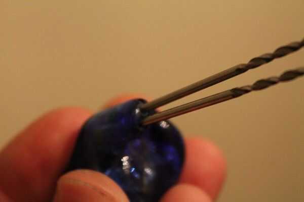 Utilizando una Dremel taladrar pequeños orificios para las salidas de tubo acústico y luego utiliza un poco de griding cónico para escariar los orificios del diámetro adecuado. Usé un poco de pulido cilíndrico pequeño para hacer los agujeros para los conectores. Encontré que pulido se prefiere a la perforación porque los pedacitos de taladro tienen tendencia a fragmento de crack de splinter el material medida que aumenta el tamaño del agujero.