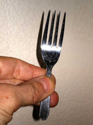 Necesario: 1 tenedor (la variedad de comer, no el tipo de jardín), preferiblemente una vieja reliquia familiar. Si no, una visita a la tienda de caridad debería ser suficiente para un puñado.
