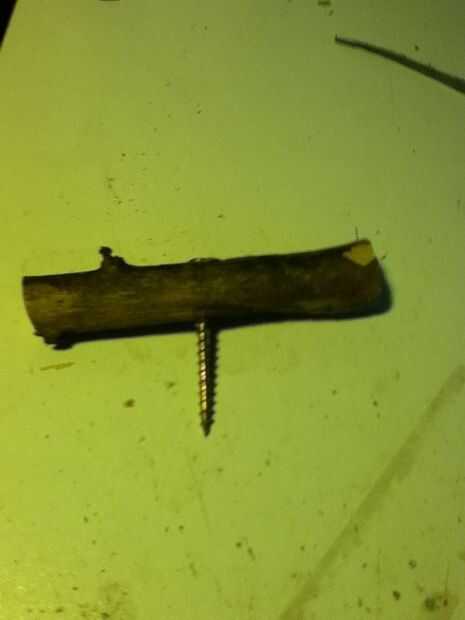 Tomar y cortar en 4 piezas de madera y poner un tornillo en él. Entonces para fijar a la estructura taladrar dos orificios para poner el tornillo.