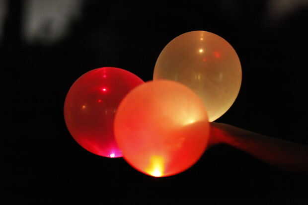 Poner el LED dentro de un globo transparente (es decir, claro, no color) y lo infla. Quería el balón tan lento como sea posible ascender inicialmente que sellé el globo con un trozo de alambre para comprobar sus capacidades de elevación. Después de unos pocos graduales inflaciones y deflaciones encontré que relativamente 9″ globo puede levantar esta carga.
