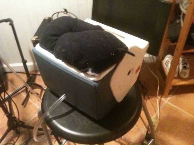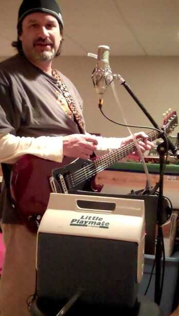 Aquí están las instrucciones para hacer un talk box de guitarra un amplificador alimentado por batería y un iglú refrigerador.