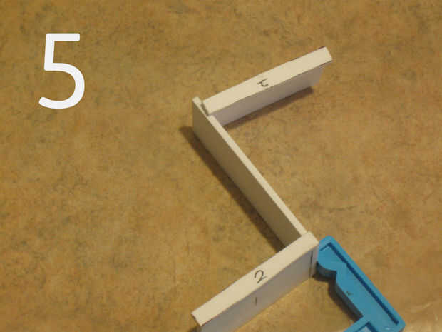 8: pegamento las piezas 3 y 4, donde marcó, pone pegamento donde toca otra pieza.