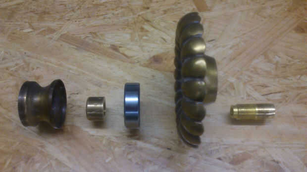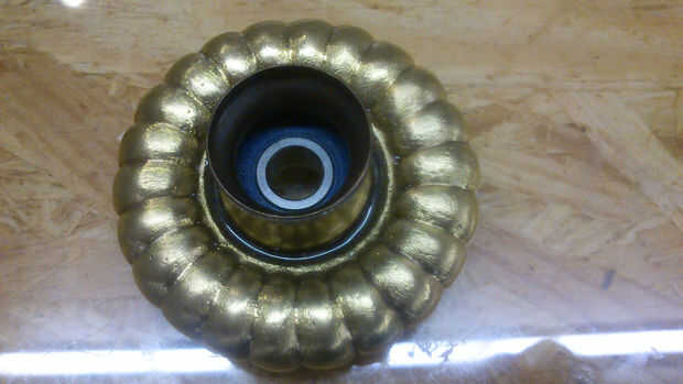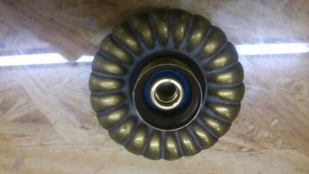 Pegamento los rodamientos de bolas y el bronce se divide en el rosetón de latón con resina de 2 K.
