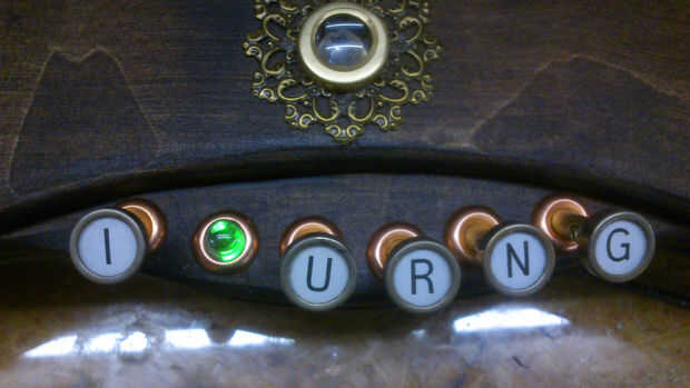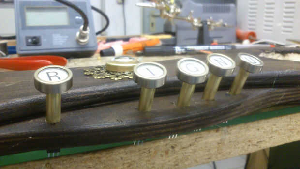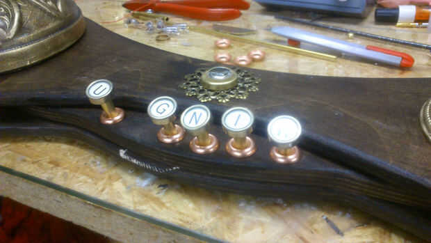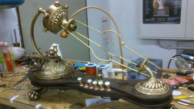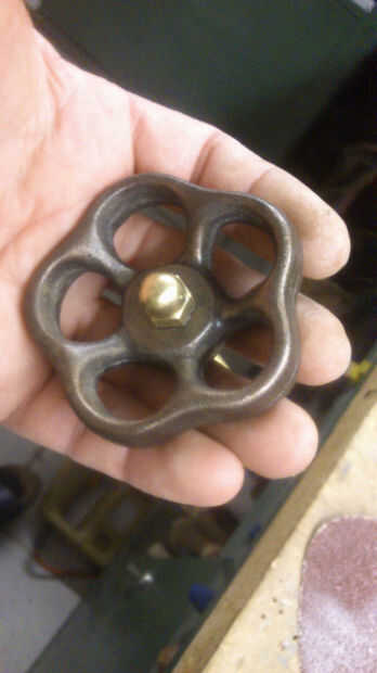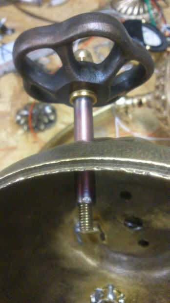 Un viejo volante de acero se reconstruirá y sirve después como un controlador para la velocidad de la jaula. Ansuitable potenciómetro del pegamento a la punta del tornillo. UV-led está sentado en el medio. Así que puede brillar a la espiral de cristal de uranio del tubo de Geissler, un let es resplandor.