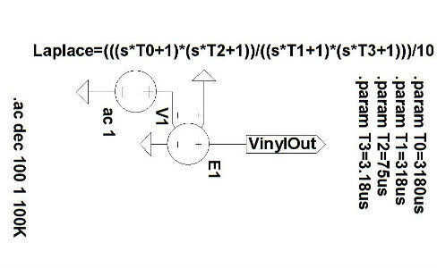 Si estás más interesado en este tema de simular la RIAA en especia, me refiero a [1] y [2]. Puede también simplemente google ese tema o visitar el grupo de LTSpice Yahoo.