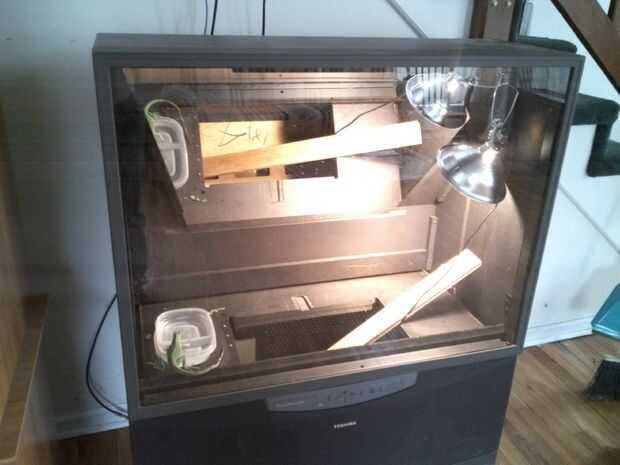 Aquí es un hermoso roble pantalla con roble patas de Queen Ann, paneles de acrílico de 3/16", moldura, alimentadores agradable, iluminación UV y un aire de limpieza y sistema de filtración. La jaula mide 36 pulgadas de alto, 42 pulgadas de ancho y 24