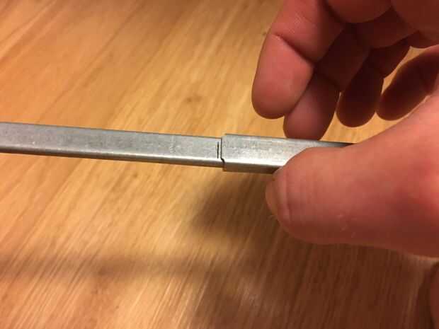 Con las dos piezas apareadas juntas, inserte el tornillo de ajuste sin apretar completamente hacia abajo. Prueba de golpeteo golpeando hacia adelante y hacia atrás por donde las piezas se superpongan. Si hay mucho traqueteo, añadir tiras de uno en un momento hasta que las vibraciones se reduce al mínimo y las piezas todavía pueden deslizarse juntos. El traqueteo será más reducido cuando el tornillo se aprieta hacia abajo.