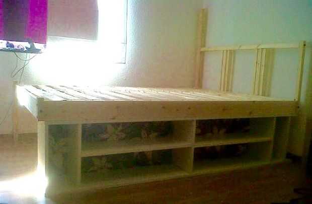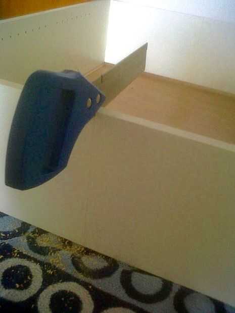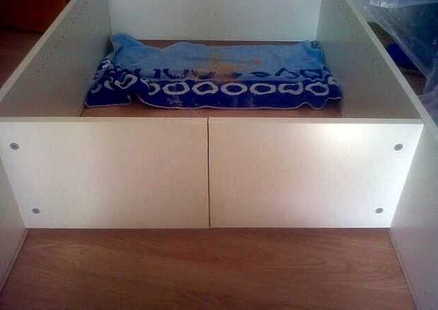 Una vez que todo se reduce a la mitad, simplemente até el lado a los estantes recién cortados por unos agujeros de la tapa y asegurándolo con tornillos para madera. No me a molestado con aspecto puesto que ninguno de los dos sería visible una vez finalizado.