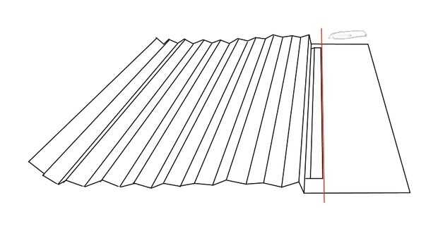 De aquí encendido hacia fuera, él es espuma, enjuague/repetir: voltear la hoja, doblar la aleta, alinee el borde recto, hacer el corte. Seguir haciendo esto hasta llegar al borde más lejano de la hoja. (Definitivamente parada cuando está fuera de cartón!) No importa si su aleta última es un poco corto o largo. A menos que seas TOC.