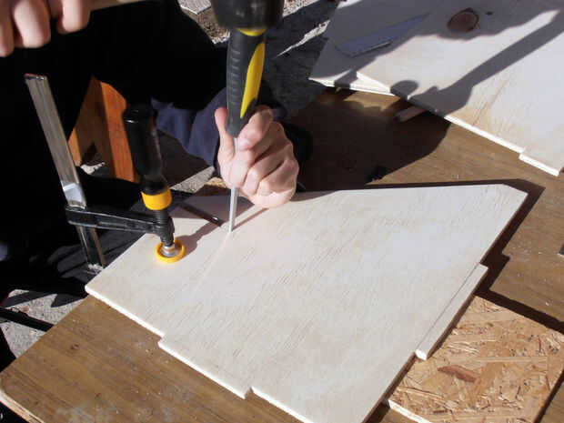 Tiene los dibujos en el papel y cortar las piezas con cuidado. Utilicé una sierra de marquetería de las mortajas y un cincel. Puede utilizar la sierra regular para esto pero va a hacer cortes burdos.