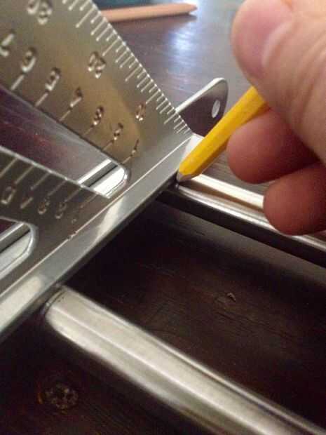 Use una escuadra para marcar la longitud deseada en todos los tubos a cortar. La longitud que necesitaba para cortar era el ancho de mi rápida Plaza tan sólo utilizarlo como una guía contra el borde - no realmente el método correcto de usar que herramienta pero trabajado!
