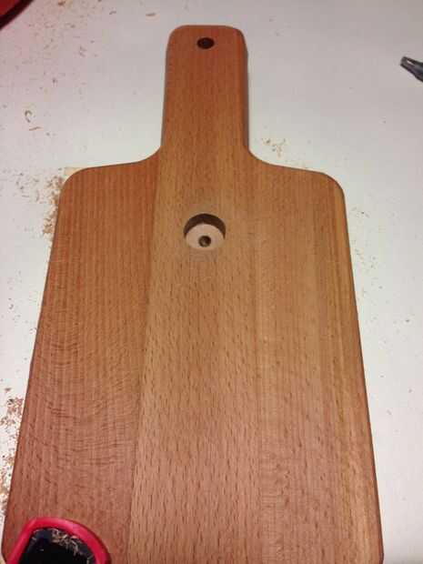 1. Taladre un agujero en la tabla de cortar para la espátula