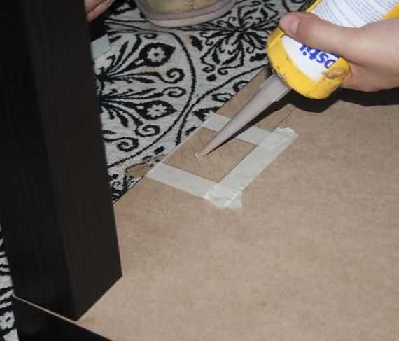 A continuación, utilice el adhesivo de construcción (Liquid Nails o similar) para unir las otras patas en la parte inferior de la mesa. Permite establecer un poco.