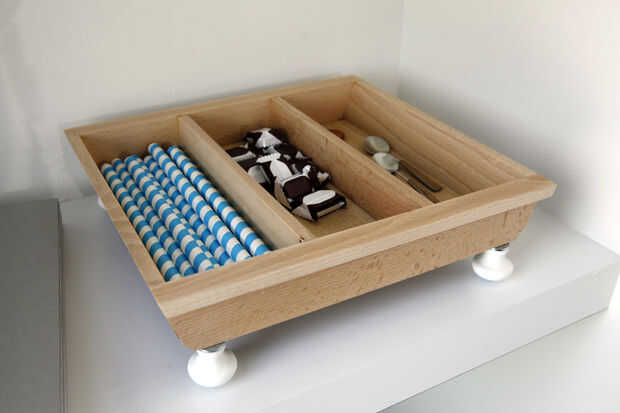 Este smart caddy cabecera dispone de compartimentos para mantener todas su transporte diario misceláneas (EDC). Este simple hack IKEA fue hecho de un titular de cubiertos IKEA y tiene tiradores como pies. Poner este carrito al lado de su cama para mantener teléfono y tapones para los oídos en la noche, o al lado de su sofá para mantener tu control remoto.