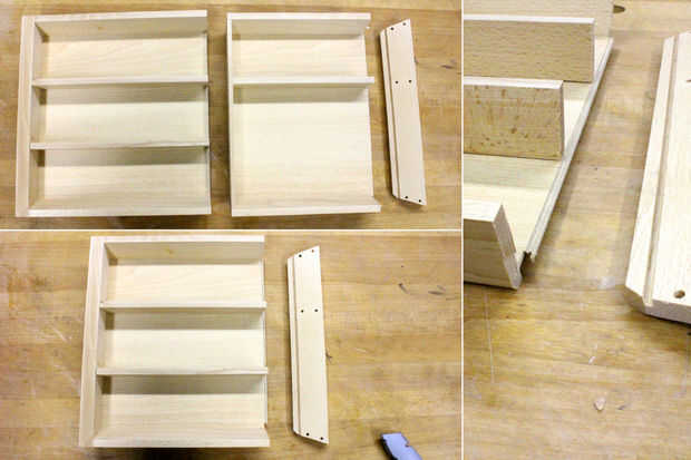 Con una sierra la bandeja fue cortada por el medio ancho en el divisor de centro. Entonces se puede colocar el pedazo de extremo en el borde de corte nuevo para una versión más corta de la bandeja de cubiertos.