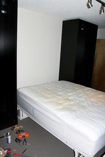 Apenas para la referencia, el colchón es un 12" Pillow-Top, con un mattresspad de eso. Está configurada actualmente para que es ajustado a la pared, pero hay suficiente espacio en el que pasar el cama fomente hacia fuera de la pared para colgar una foto allí.
