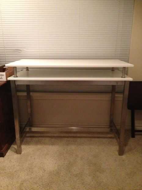 En este punto se puede establecer el nivel de 2 º en la parte superior del escritorio principal. Personalmente no tengo un problema con él deslizamiento con el equipo en la parte superior, pero se puede (y podría acabar) poner velcro o una almohadilla no se deslizó bajo los soportes para el 2 º nivel. Esto es donde configuras tu teclado, ratón, trackpad, etc..