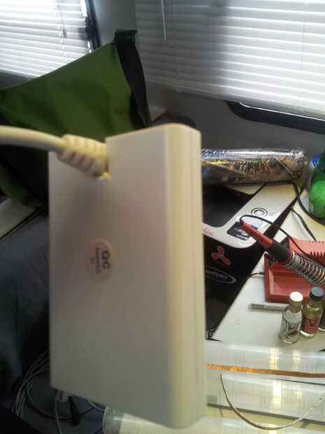 > primero cortó el adaptador 120v im usando esto en un remolque el voltaje del inversor es un 12v aceptable así que duro cableados en.