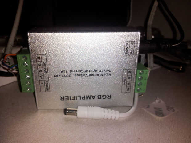Me orderd de un amplificador de rgb $ 5 de ebay y corrió el cuarto canal de pod en la entrada del amplificador rgb.