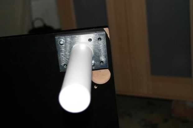 Hacer agujeros cerca de las esquinas y atornillar la placa a la puerta, los tornillos parecen que están en el lado largo pero son realmente justas...