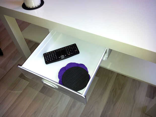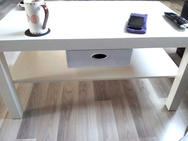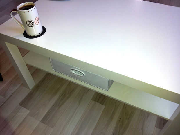 esto es una gran mesa para espacios pequeños. El soporte de pedestal no sólo hace parecer flotar sobre el piso, sino que también hace que sea fácil acercarse a la mesa cuando estás sentado en el sofá o el suelo. El cajón ocupa todo el cuerpo de la ta