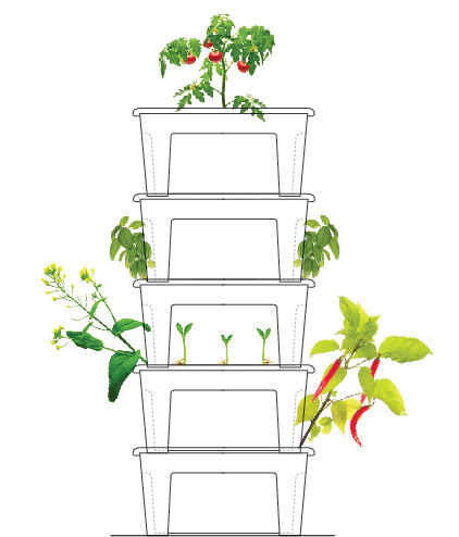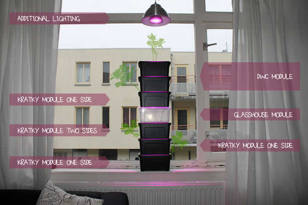 Este jardín hidropónico modular le permite personalizar su sistema eligiendo los componentes de acuerdo a sus necesidades personales. Puede usted decidir si crecer fuera de la red con los módulos Kratky o añadir módulos que requieren electricidad como el módulo de bomba de aire y luz. Los diferentes módulos se pueden apilar uno encima del otro para hacer un uso eficiente de su espacio. La mayoría de los componentes está disponible en IKEA.