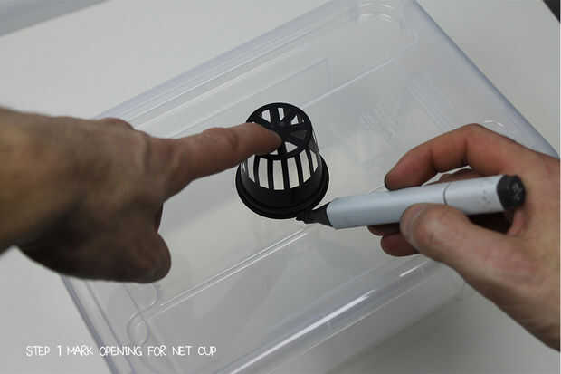 - Siga los pasos de preparación de la tapa y potes de red como se describe en las instrucciones del módulo kratky arriba.