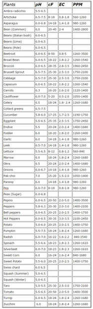 El valor de CE te dice algo acerca de la cantidad de partículas disueltas. A veces esto también se puede proporcionar por un cF de valor PPM. Las plantas necesitan nutrientes para crecer, una escasez o exceso en la cantidad de nutrientes proporcionados puede limitar este crecimiento. Por lo tanto es importante comprobar el valor de CE con un medidor EC y ajuste en el valor óptimo si es necesario. Consulte la tabla proporcionada en las imágenes arriba para el valor específico de la CE de diferentes cultivos.