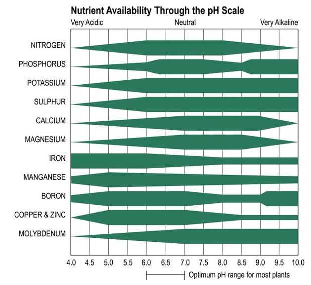 Se dependía de la capacidad de las raíces los nutrientes de la absorción de la solución del pH de esta solución (ver tercera foto, tabla de pH). El pH óptimo de la gama, donde la planta es capaz de absorción de todos los nutrientes, se encuentra entre un valor de 6 a 7. El pH del agua del grifo varía regionalmente. También influirá en la cantidad de nutrientes disueltos en el agua el pH. Por lo tanto es importante revisar y ajustar el pH de la solución nutritiva antes de que la solución se suministra a la planta. Puede pedir un kit de prueba de pH líquido (opción barata pero menos práctico) o un medidor electrónico (opción cara) se puede comprar para comprobar el pH. Cuando el pH es demasiado alto o demasiado bajo se puede ajustar con un pH hasta o pH abajo la solución que se puede pedir. En las imágenes de arriba se da un resumen con los valores de pH específicos por cultivo.