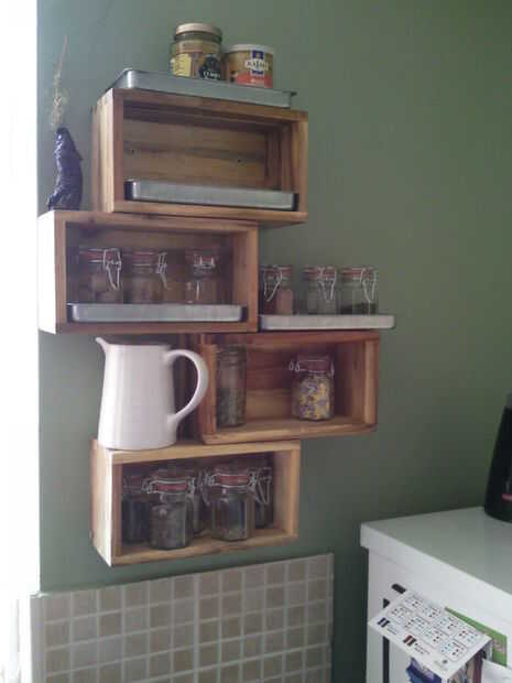 - Los estantes tenían que construir a partir de la coincidencia de madera dura y tienen un aspecto 'rústico' para que coincida con mi cocina.